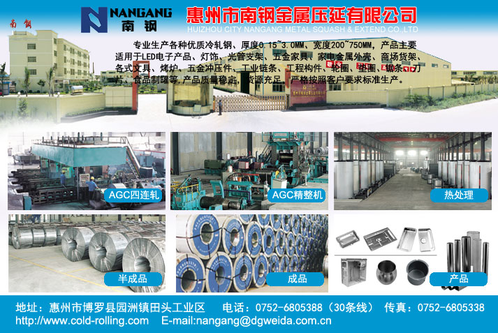 專業(yè)生產(chǎn)各種優(yōu)質(zhì)冷軋鋼、厚度0.15~3.0MM、寬度200~750MM,產(chǎn)品主要適用于LED電子產(chǎn)品、燈飾、光管支架、五金家具、家電金屬外殼、商場(chǎng)貨架、各式文具、烤爐、五金沖壓件、工業(yè)鏈條、工程構(gòu)件、輪圈、墊圈、鋸條、刀片、食品制罐等,產(chǎn)品質(zhì)量穩(wěn)定,貨源充足,嚴(yán)格按照客戶要求標(biāo)準(zhǔn)生產(chǎn)。