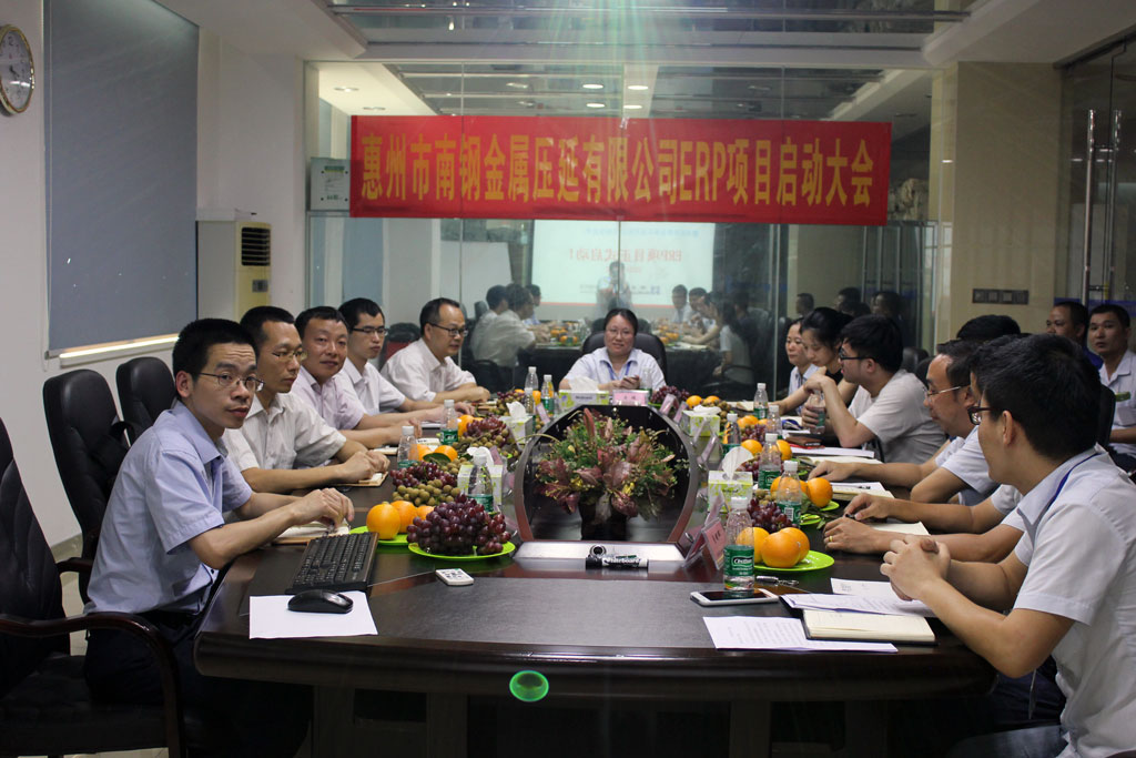 2016年7月22日,備受期待的惠州市南鋼金屬壓延有限公司(以下簡稱:南鋼公司)ERP項(xiàng)目啟動(dòng)大會(huì)在惠州南鋼辦公大樓綜合會(huì)議室正式召開。受公司董事長沈先生委托,南鋼公司總經(jīng)理吳娟女士、業(yè)務(wù)總監(jiān)林躍軍先生及其他各部門主要管理成員和廣州市寶鍶信息技術(shù)有限公司(以下簡稱:寶鍶公司)史建軍副總經(jīng)理帶隊(duì)的寶鍶技術(shù)骨干等雙方共計(jì)21人參加了本次會(huì)議。會(huì)議由南鋼公司業(yè)務(wù)經(jīng)理助理肖健輝先生主持。